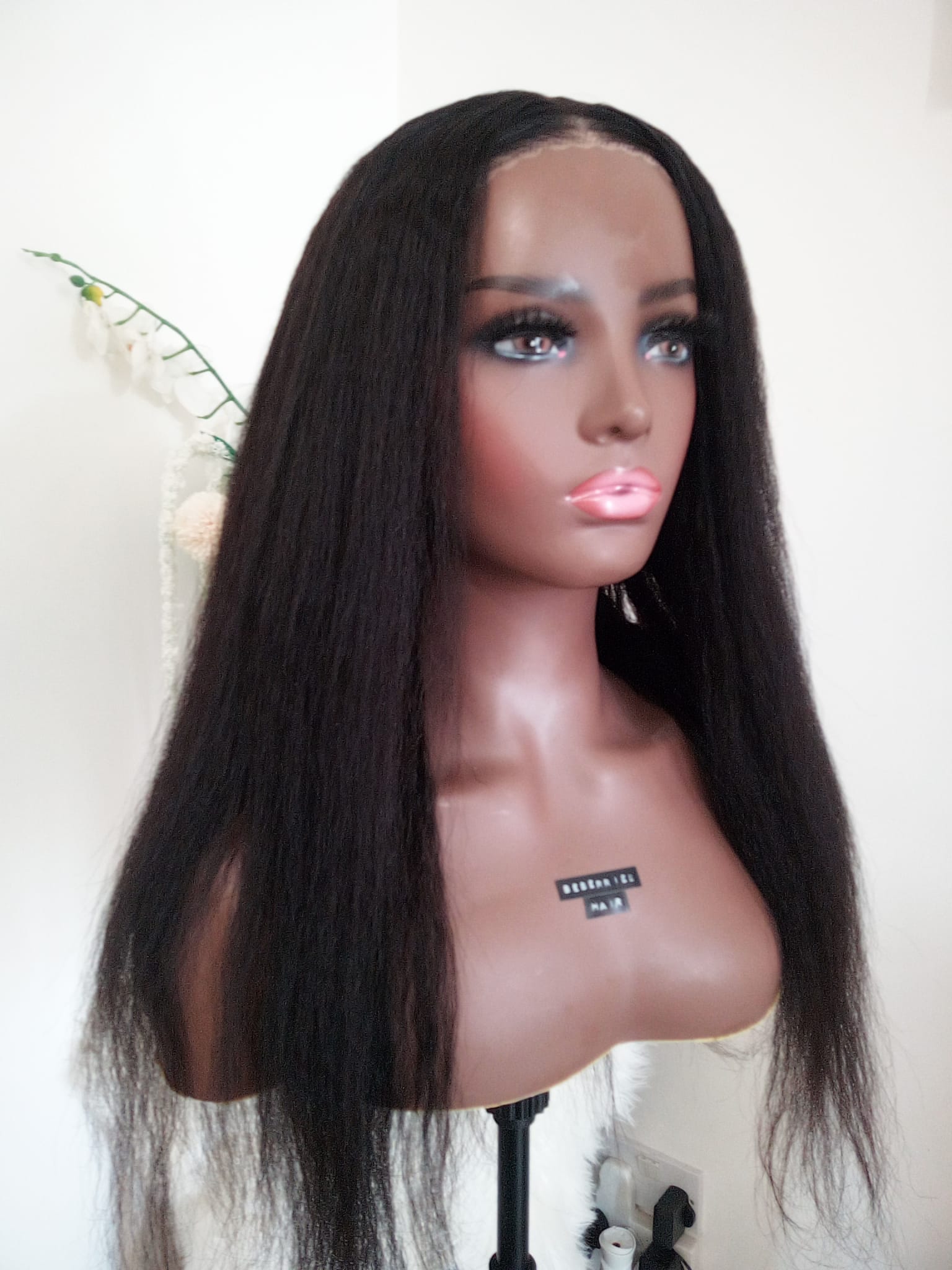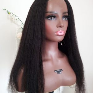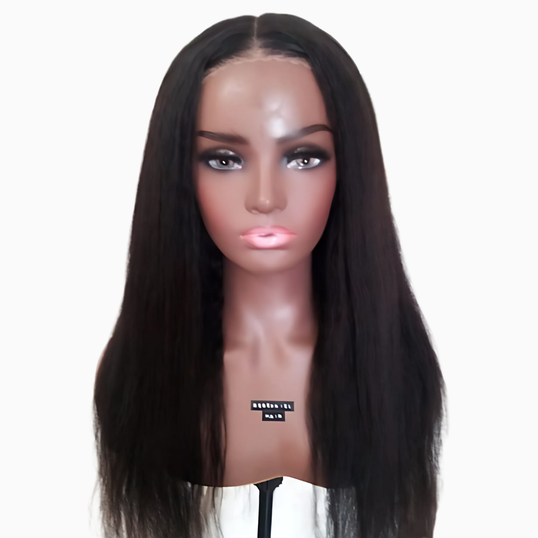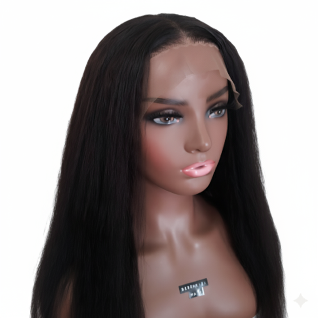 Wig – 22″ Glueless 5×4 Transparent Lace, Human Hair. Soft kinky straight texture with a natural hairline. 100% human hair, glueless fit, lightweight, and easy to style. Perfect for everyday elegance! This 22″ wig features a kinky straight pattern that blends volume and sleekness effortlessly. Crafted from 100% premium human hair, it offers a soft feel, durable quality, and a glueless 5×4 transparent lace for a flawless, natural hairline without adhesives.